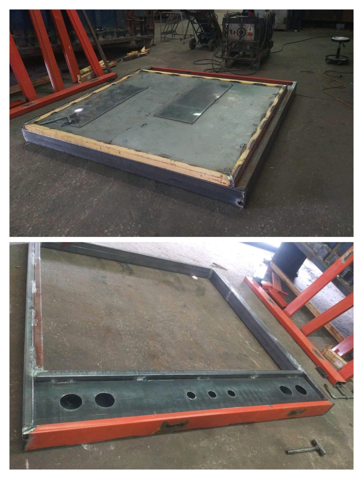 Las uniones se realizaron mediante soldadura MIG, incorporando refuerzos estratégicos y perforaciones técnicas para permitir instalaciones hidráulicas o mecánicas según necesidad